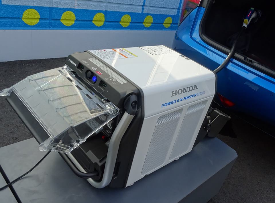 車(燃料電池車)から電気を取り出し、家電製品や災害時・屋外イベントの電源につなげる。