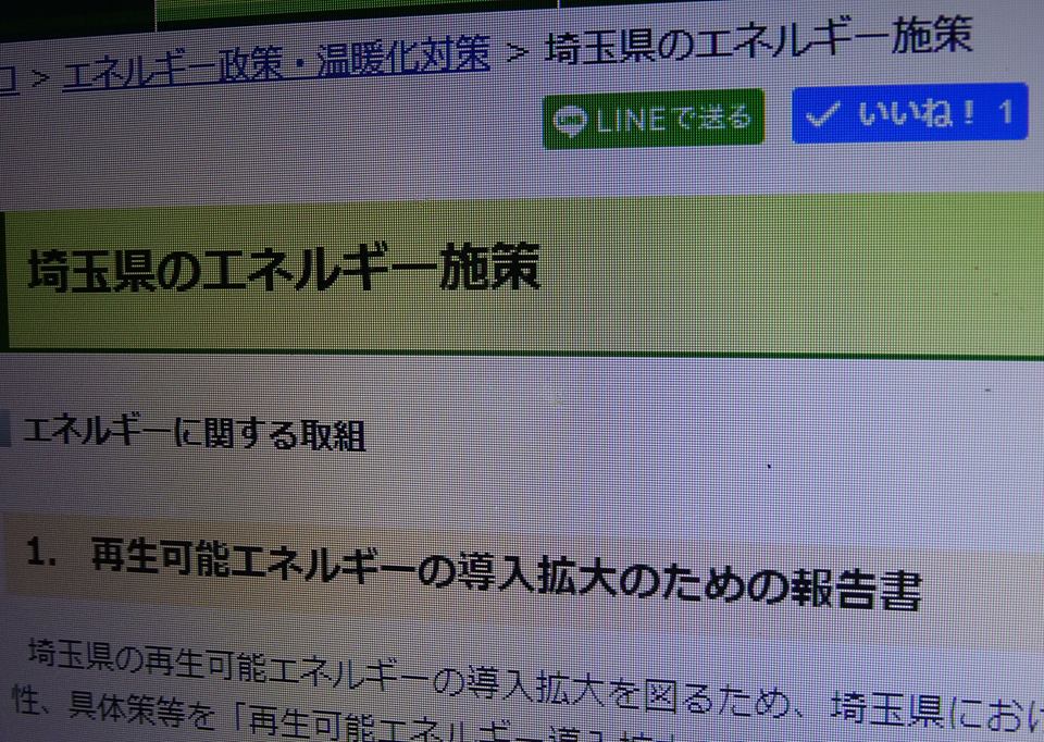 『自然エネルギー』埼玉県庁HPに【いいね】を押した人は現在、ゼロ!(私だけ)