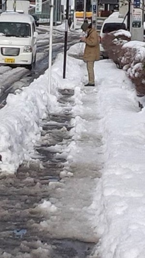 後は、雪かきした所が滑らないと分かると人がどんどん通って、周りも解ける。