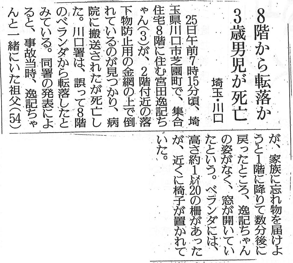 3才の子がいる8階の家のベランダに、どうしてイスがあったのだろう。