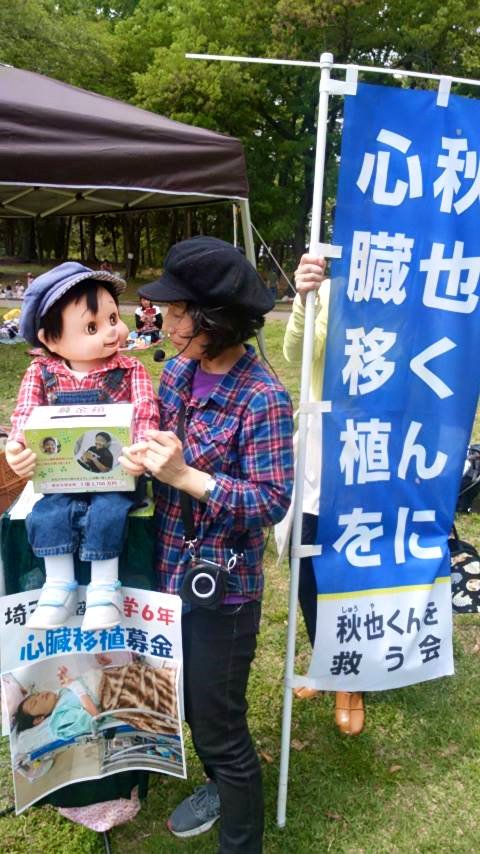 腹話術師のアンディと、カオルちゃんが『心臓移植募金』を、狭山・稲荷山公園でのイベントでやってくれるとの事で、グッズを持って、急行!