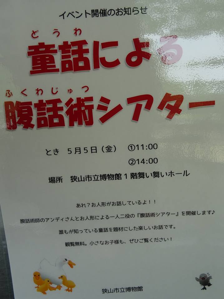 『腹話術師のアンディ』(映画のサブタイトルみたい(^o^))による『秋也くん募金』は、川越・蔵里で、5月6・7日にも行って下さるそうです。