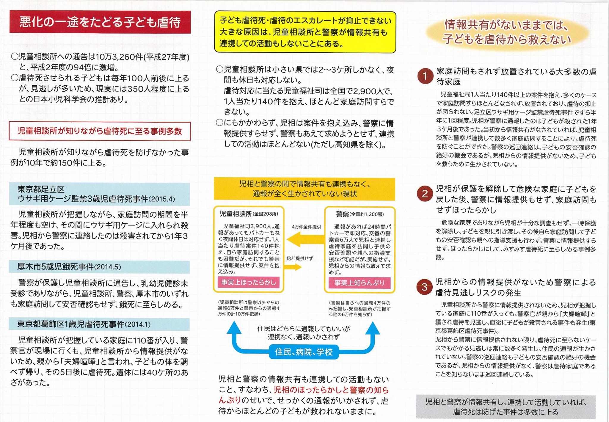 後藤弁護士は児童虐待について「警察は児童相談所に100%情報を出しているが、児童相談所は情報を出さない」という問題意識を持っています。