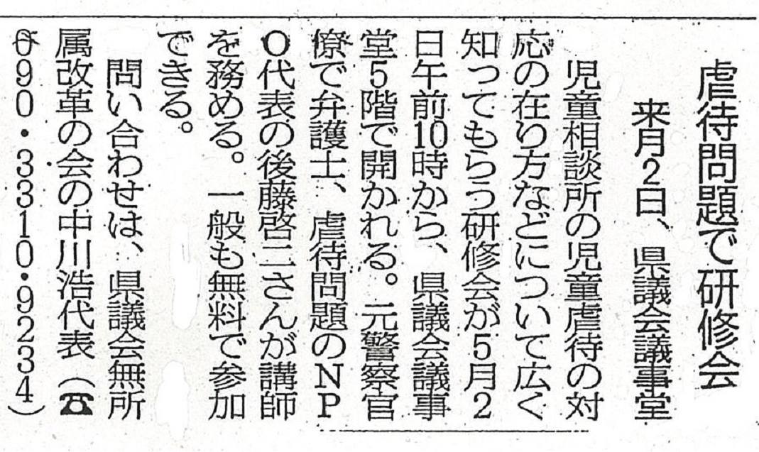 県議会では自民会派から、重要な虐待防止条例が提案される予定です。(記事は埼玉新聞4月29日より。つづく)