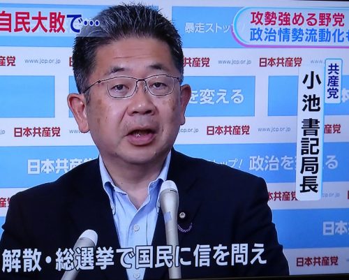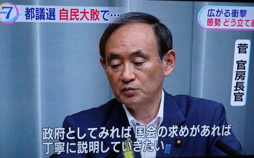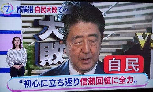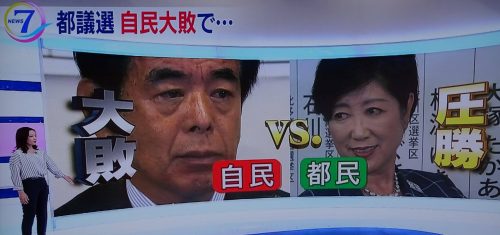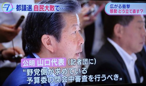 新聞記者から「都議選の感想は?」と、県議会の会派室で