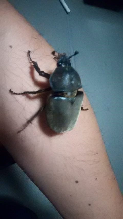 今年初のカブトムシは、うちの前であお向けで、もがいていました。私の手にくっ付いて来た後、(自然のあるほうに飛んで行けばと)壁の上に置いたら、落ちてまたあお向けに。