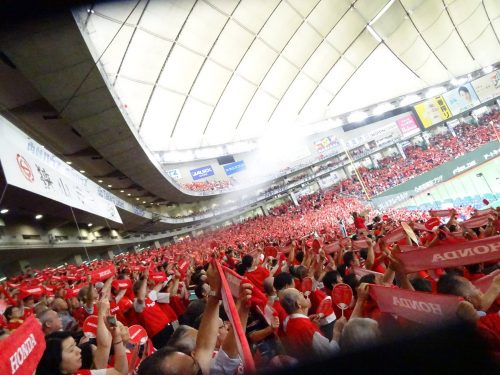 狭山市・HONDAの応援で、真っ赤!
