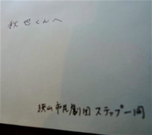 『狭山市民劇団ステップ』の団員全員の皆さんが、秋也君の為に募金して下さり、宮野善太さんが持参下さいました。ありがとうございます!