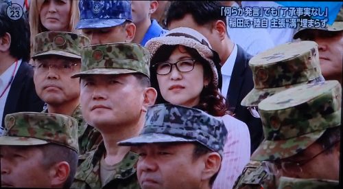 右奥は(辞職となった)陸上幕僚長。陸上自衛隊最大の演習(富士火力演習)のこの日、大臣の姿に面食らって、更につらかったと思う。仕えなきゃ、いけないから。