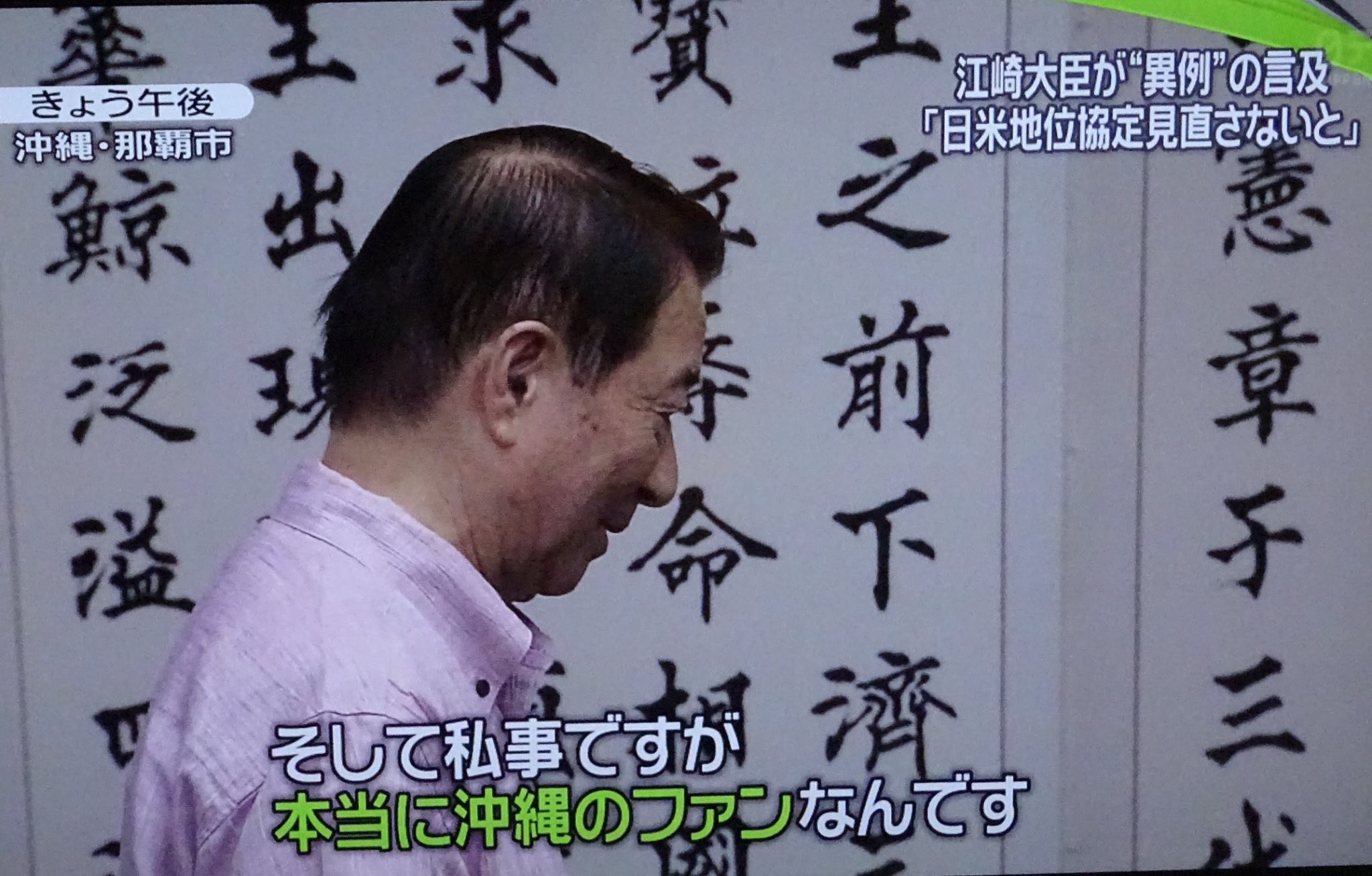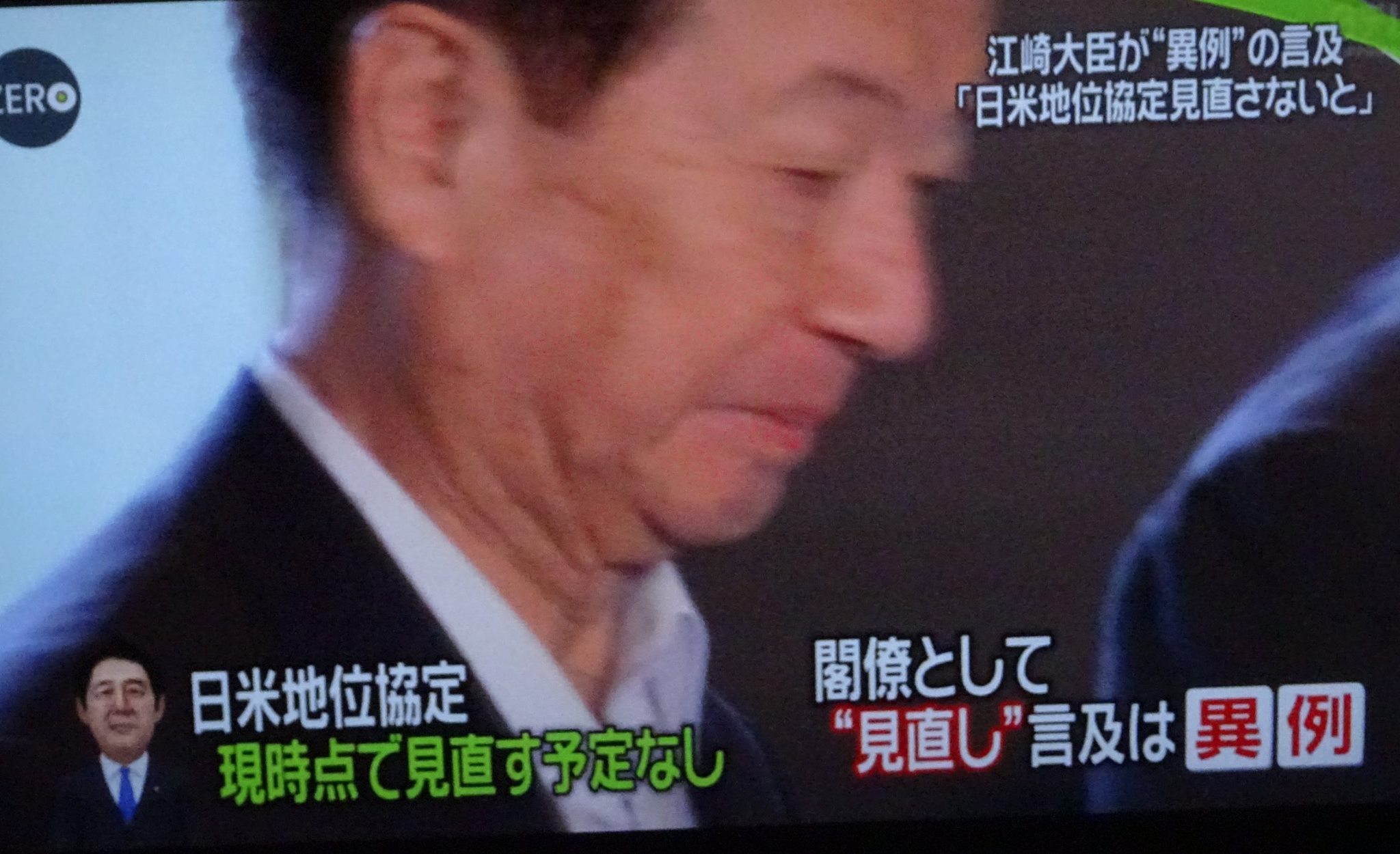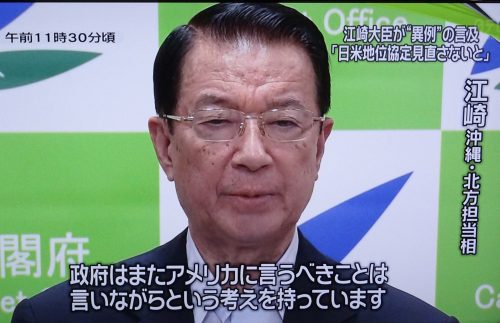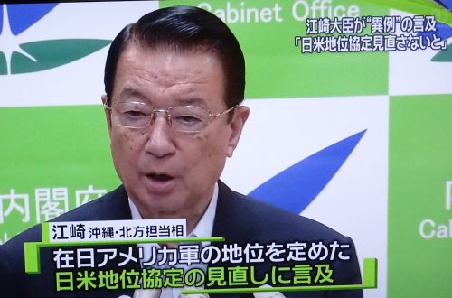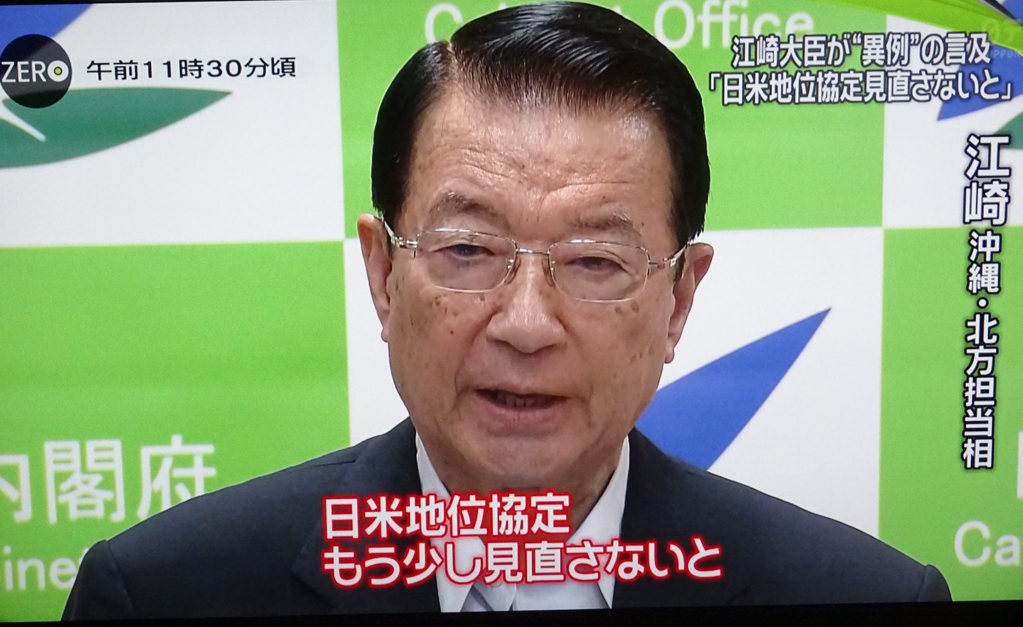 安倍総理は、日米地位協定の見直しを考えていない中、江崎沖縄担当大臣は言及。