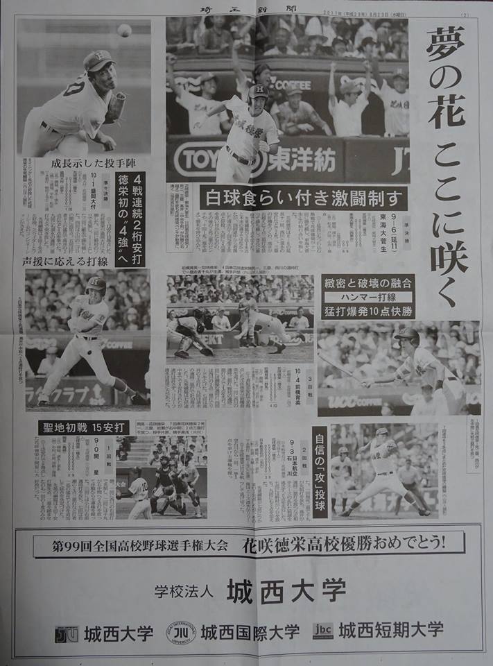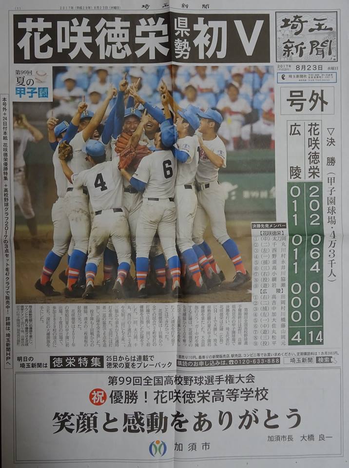 花咲徳栄高校(加須市花崎)おめでとうございます!(かぞ市には『花崎』という駅があり、その近くです)。