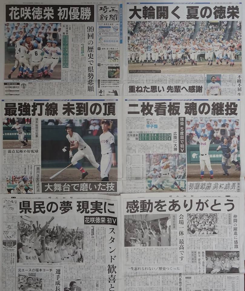 埼玉県勢『初優勝』。今年99回大会で、埼玉県が『初出場』したのは31回大会(1949年)からだと、今日の埼玉新聞で知りました。
