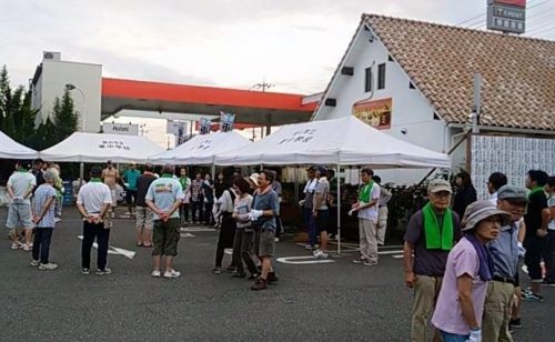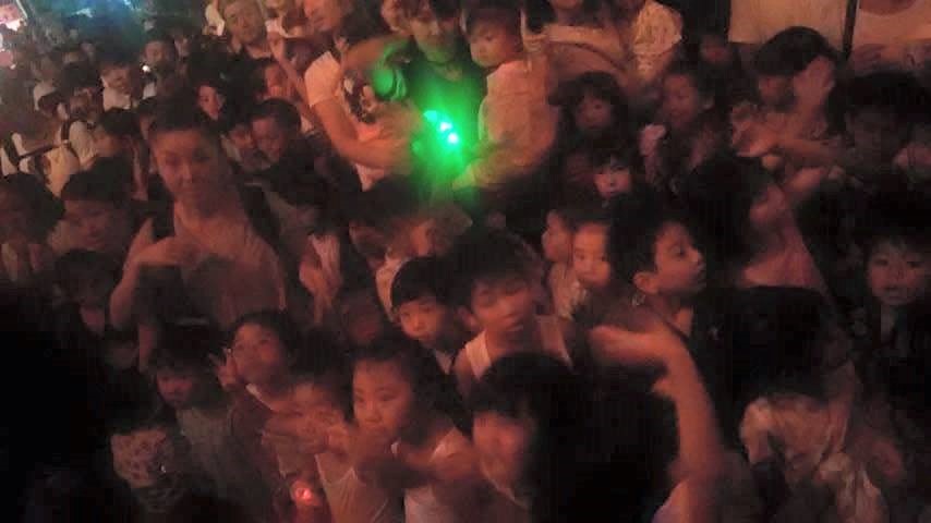 夏祭りで【お菓子まき】を待つ子供達。