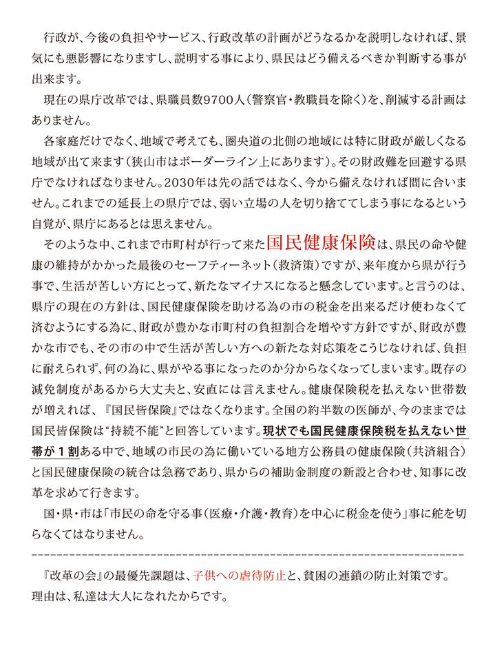 内容は、①『超高齢・人口減少社会』13年後の2030年の県財政支出見込み②来年度から『国民健康保険』が県に③『児童虐待』対策の3本です。