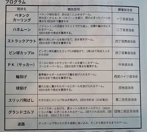 走ったりする『競技種目無し』の狭山台自治会連合会の体育祭メニュー。