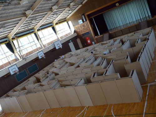 『迷路』で使った段ボール。実は【災害】時には避難所の『間仕切り』に使え(着替えなど、プライバシー保護)、狭山台では3年間同じ段ボールを迷路で使っていると教えて下さいました。