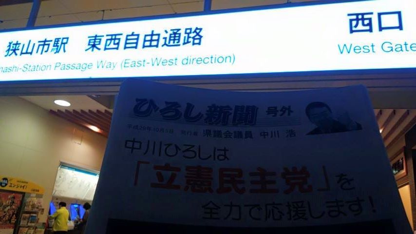 今日朝から6時間以上、狭山市駅東口で『ひろし新聞 号外』配布!