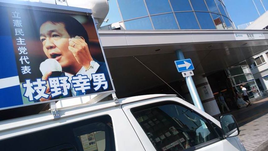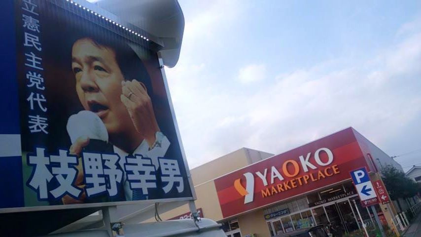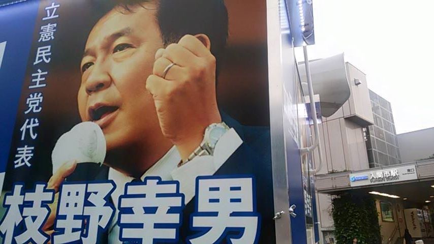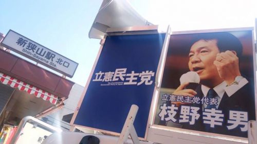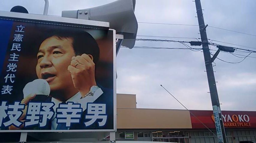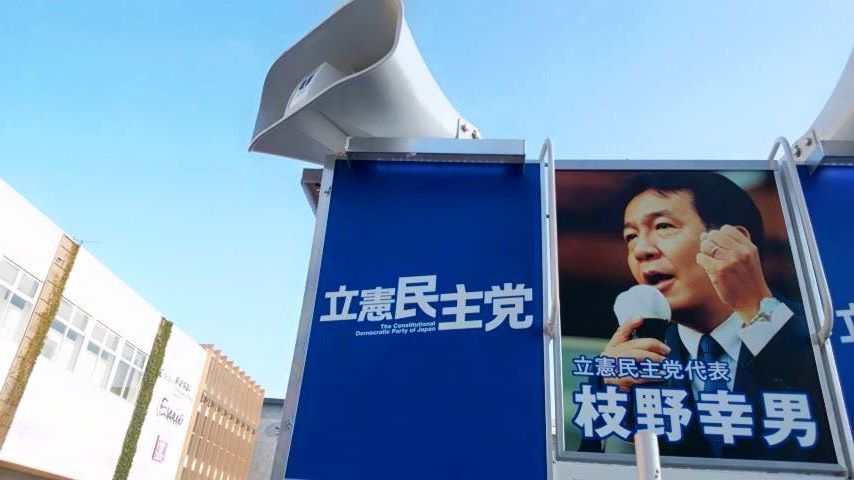 ↑「10月10日の大宮での街宣です。『排除するのではなくて、支え合う社会を。困ったときに寄り添える社会を、もう一度この国に立て直していきましょう。21世紀の新しい民主主義の形を、新しい社会の形を、しっかりと示して前に進めて行きます。右でも左でもなく、前へ。』」- 立憲民主党 on Twitter