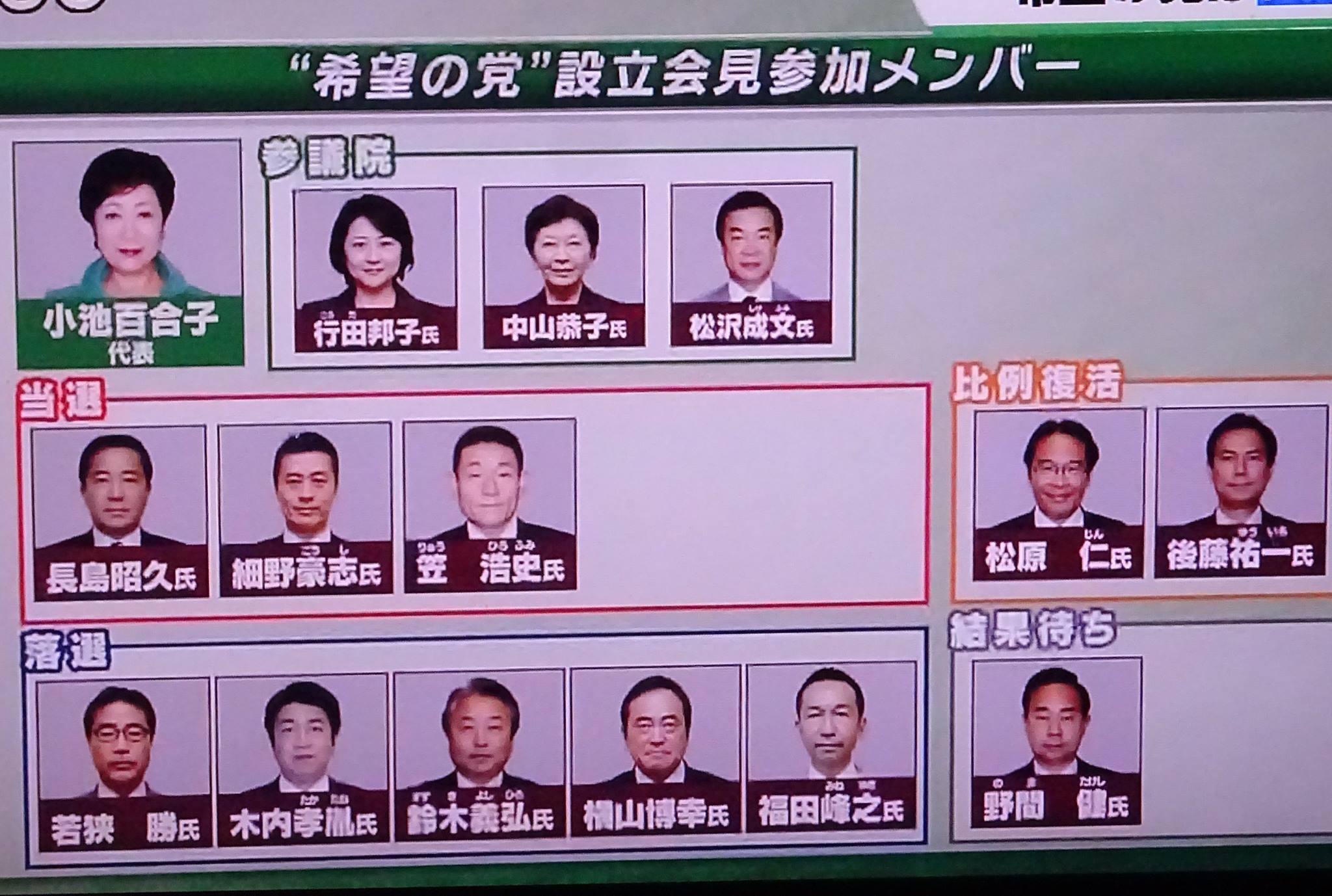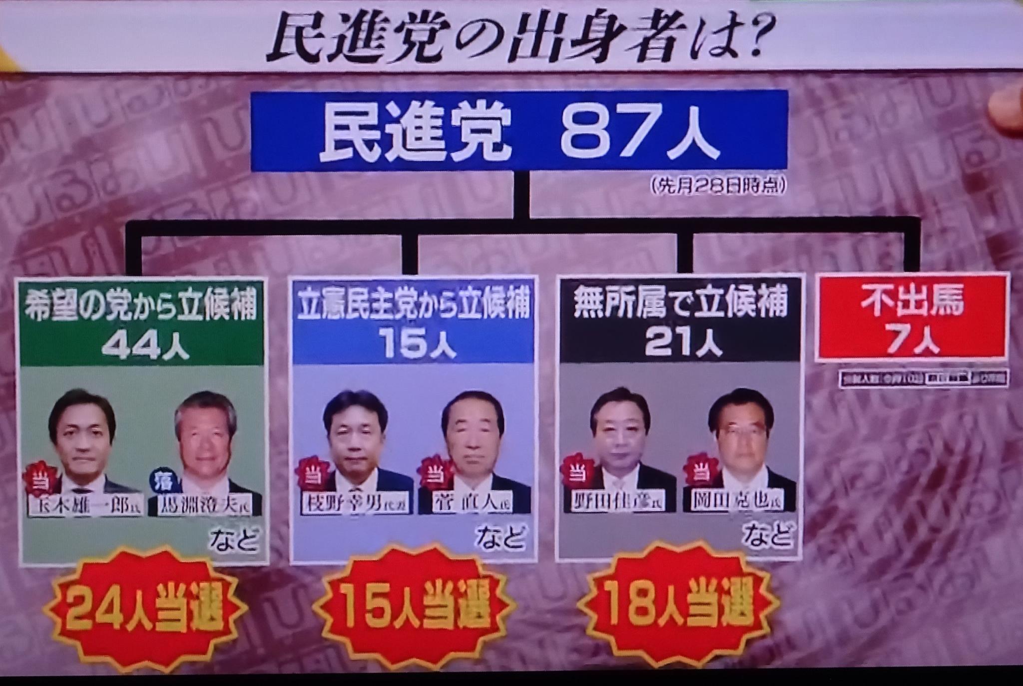 『野党の受け皿』の新党のはずが、小池党に行った『現職』の半分が落選。小池党に行かなかった現職は、ほとんど当選。