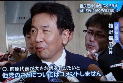 (前原氏が、都知事の新党に合流する事を勝手に決めた翌々日)