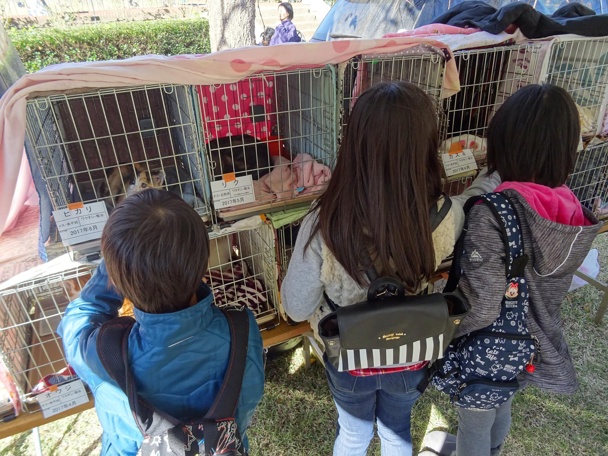 犬ネコ里親相談会。『さやま猫の会』が、智光山公園のイベントで活動中。