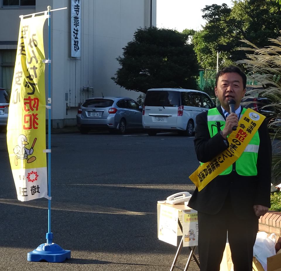 防犯活動をされているボランティア団体の方々を前に私から