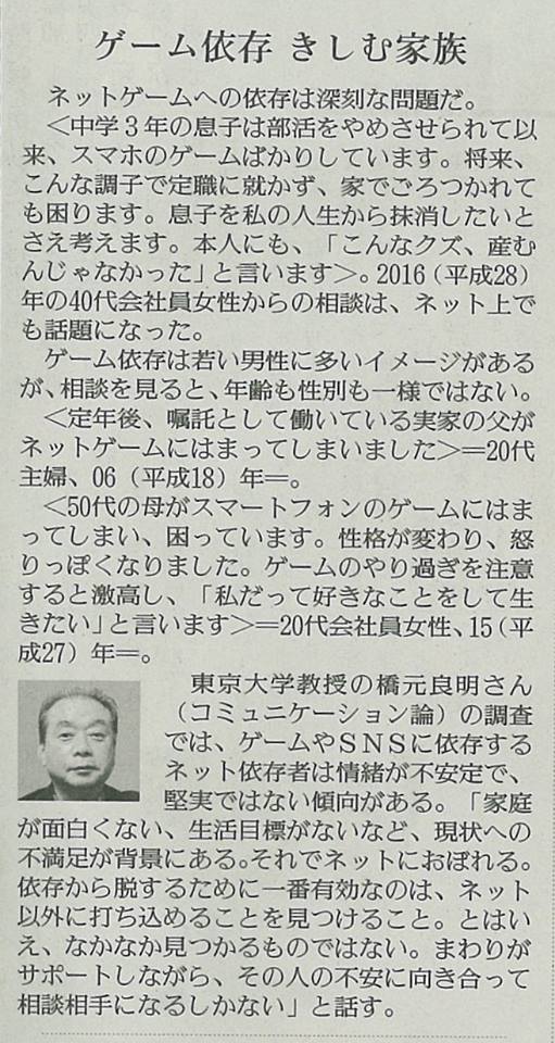 『現状への不満足が背景にある』『一番有効なのは、ネット以外に打ち込める事を見つける事』。(元旦の読売新聞より)