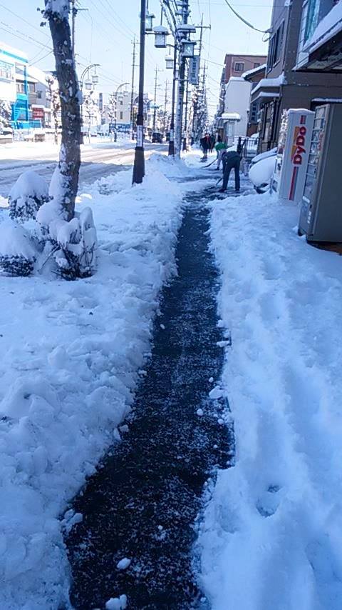 ひろし事務所前は、完全に歩道の雪をゼロの状態に。