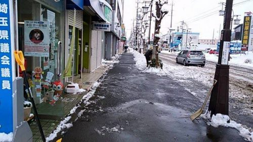 私が議員になった23年前は、商店街で朝早く雪かきをする人は他にほとんどいなかったけど、今は若い方を中心に増え、夜のうちに雪かきを終えたお店も出て来ました。うれしい。