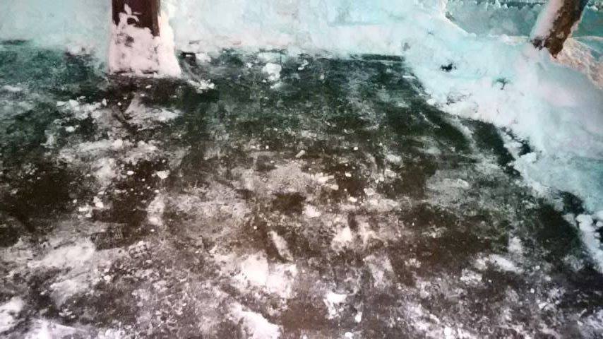 こうしないと、残ってる雪が解けて、凍ってしまう。