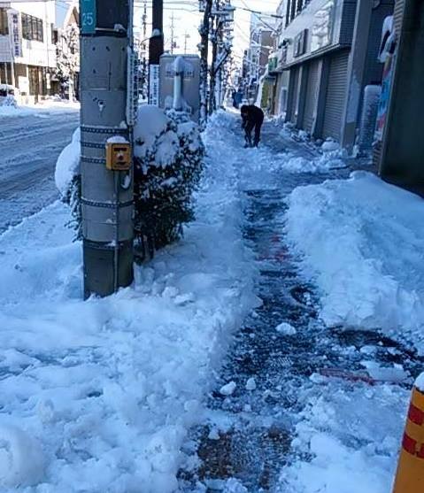 ホントに歩きに自信が無い人ならば、雪かきの手を止めて、よけるけど、そうでないのではないかとよく思う。(お声がけがあれば、当然よけます。また、歩道全部を雪かきするのなら、通りたい所と違う所を雪かく事も出来るのだけど、そうではないので)