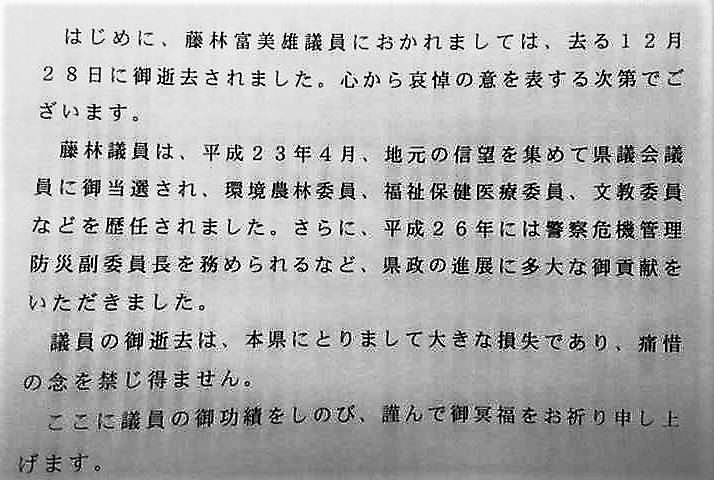 (写真は、知事の弔辞)