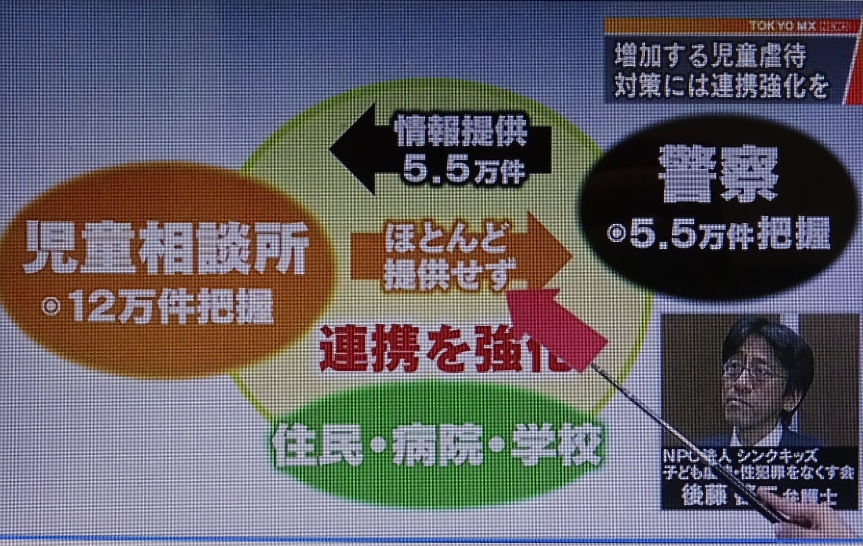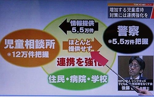 高知県・茨城県では、児童相談所に寄せられた虐待通報は、全て警察と情報を共有し、警察にその子や親が引っかかった時に、気付きやすい仕組みにしているが、埼玉県は、そうなっていない。