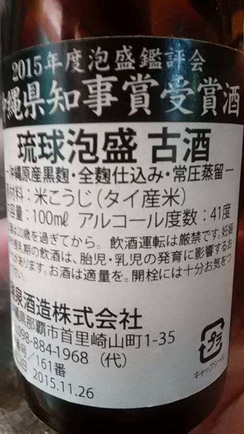 埼玉・大宮で、沖縄県知事賞(2015年)を受賞した泡盛を頂きました。