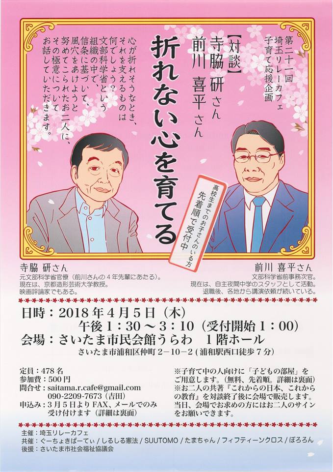 【対談】寺脇研さん×前川喜平さん『折れない心を育てる』 子育て応援講演会(浦和)