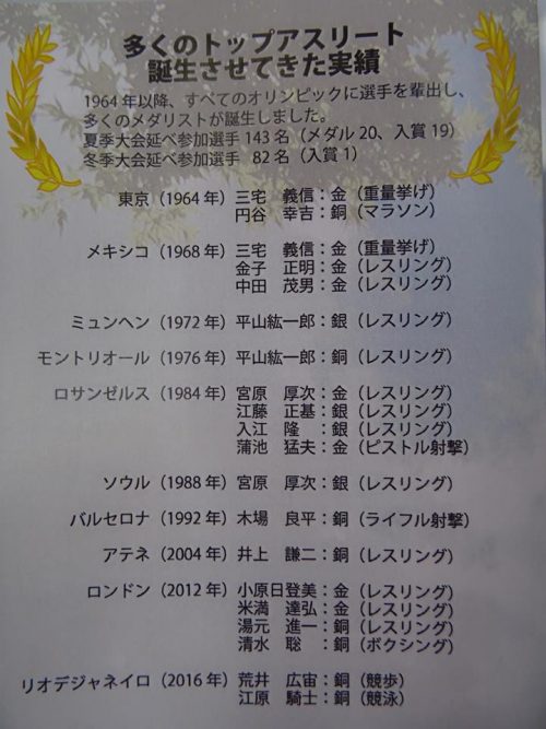 マラソン・銅メダルの円谷選手、重量挙げ・金メダルの三宅選手(今日は弟で、前学校長が見えていました。娘さんもメダリスト)をはじめ、数々の選手が、自衛隊体育学校で自己研さんされています。