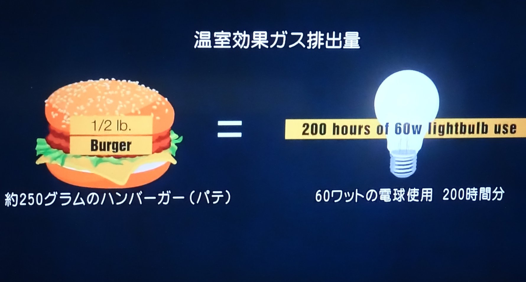 肉が食べたい時、牛肉を食べる量を、鶏肉に変えると、温暖化ガス排出量を、8割減らせる。
