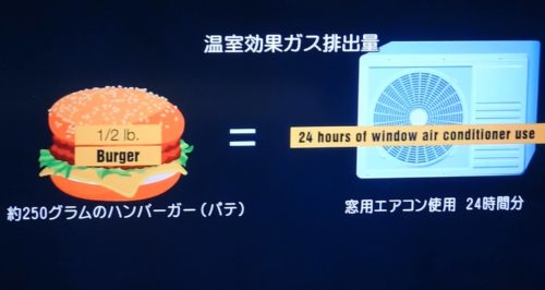 牛のゲップは、地球温暖化への影響が大きい。米国の温暖化効果ガス排出の12%は、牛肉生産で排出されている。(牛のゲップの中にあるメタンの分子1個は、二酸化炭素の23個分の影響が出る)