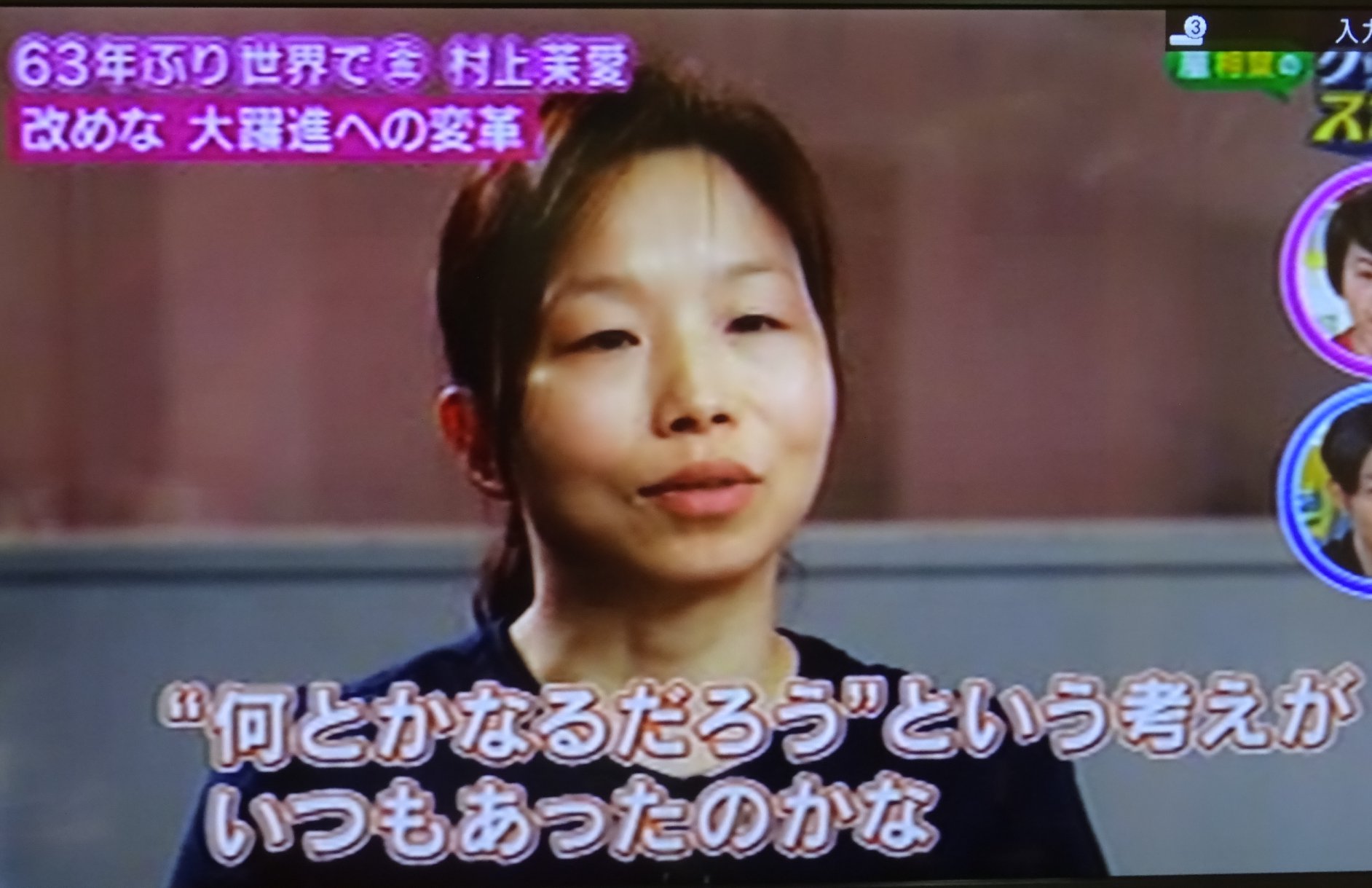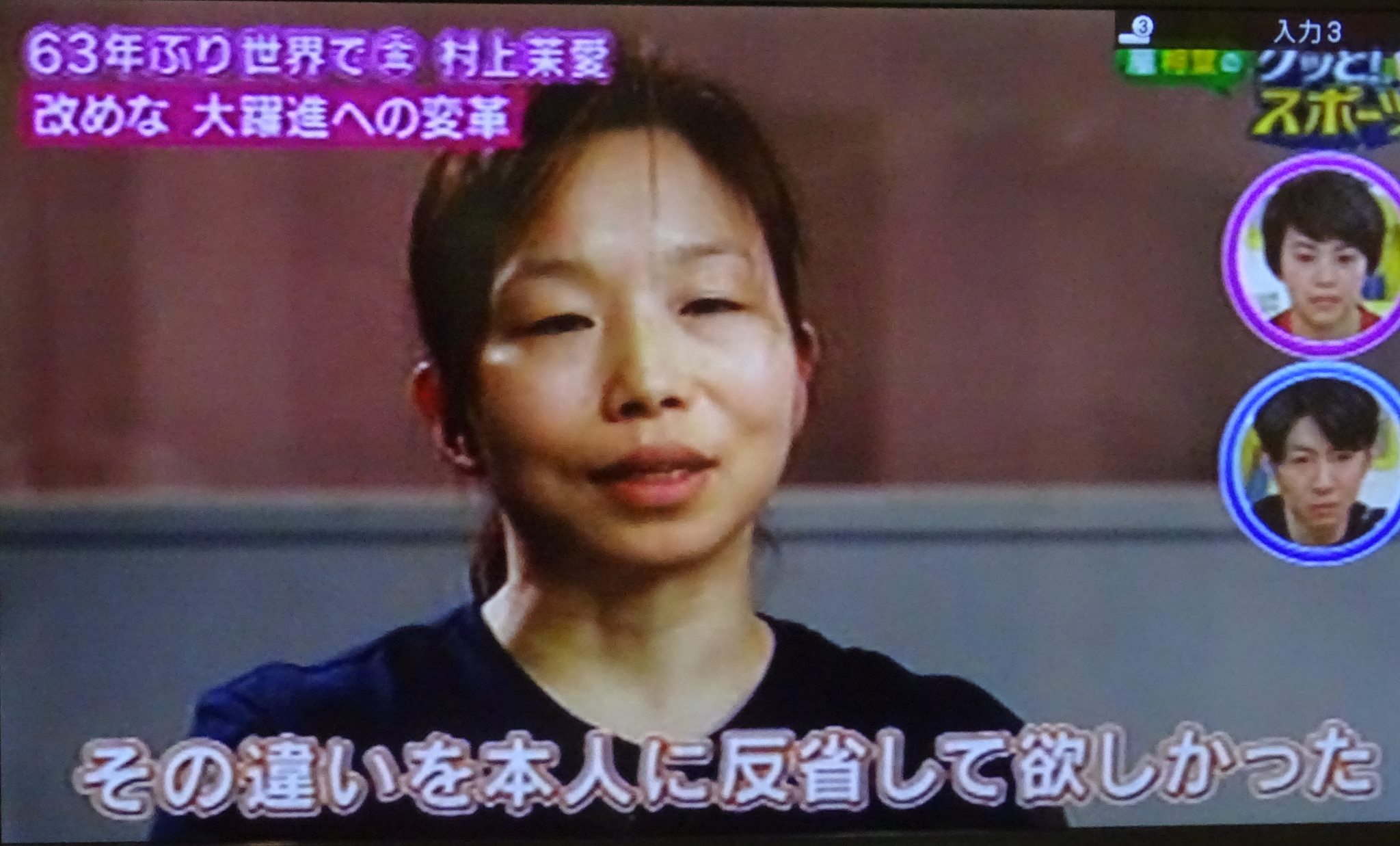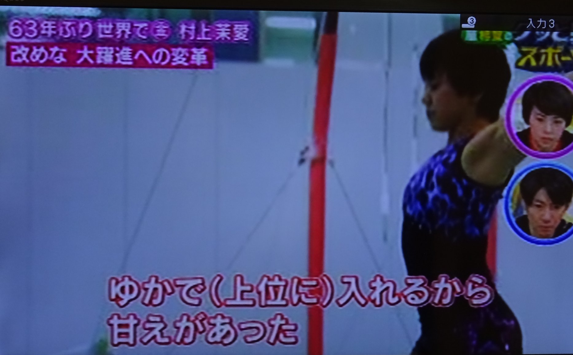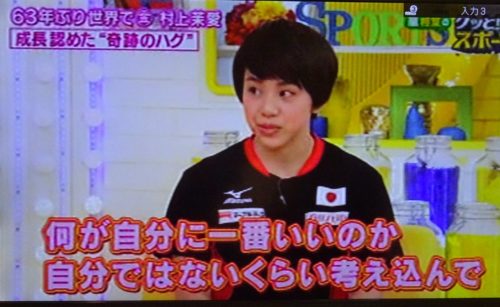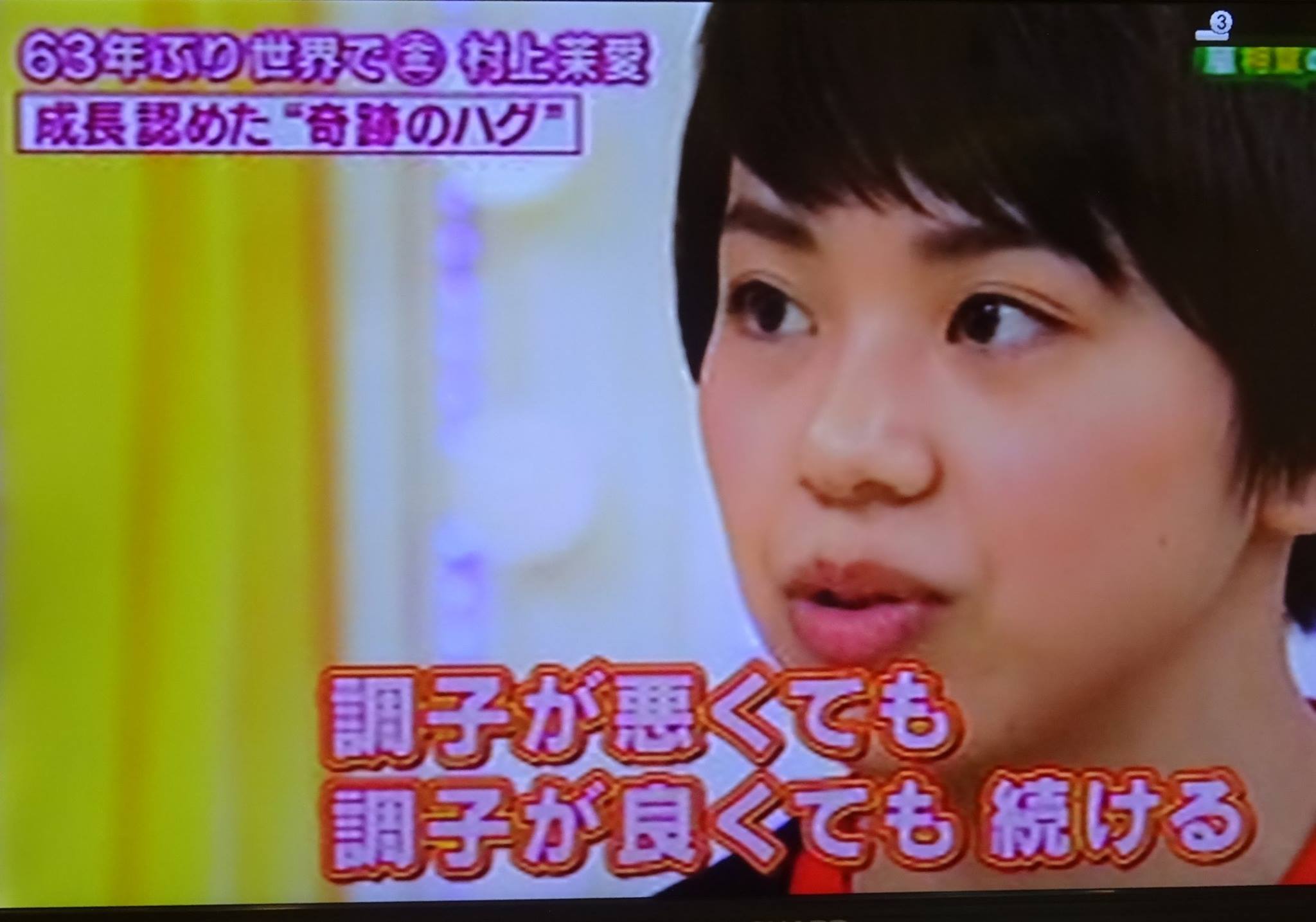 (写真は、NHKグッとスポーツ『ゴムまり娘 体操 村上茉愛』より。)