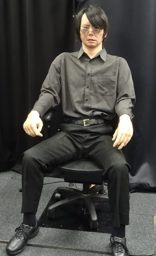 研究者そっくりのアンドロイド実物。まばたき・頭・手が動いていました。