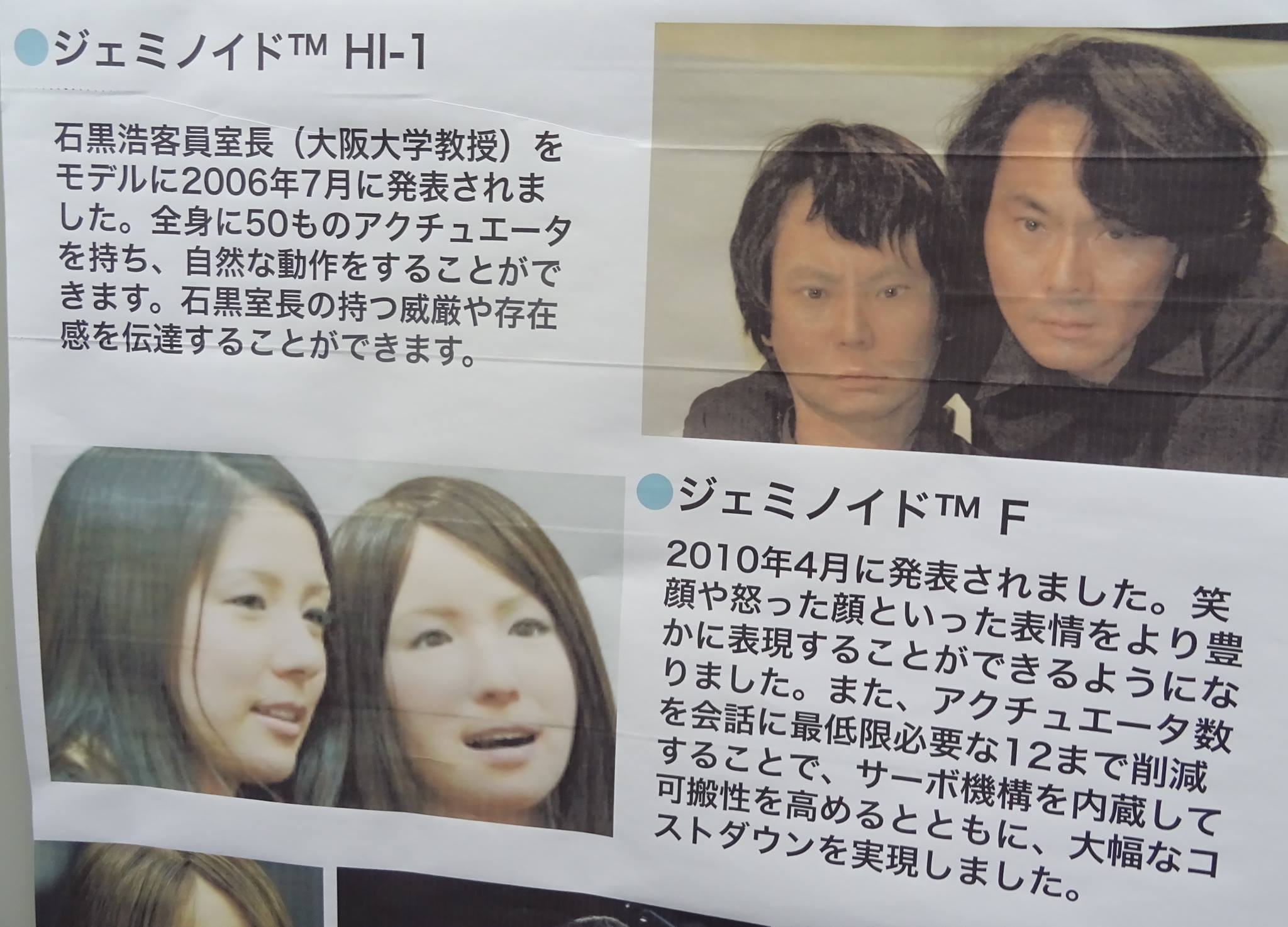 研究者の方に私から「『目ヂカラ』の研究もしているのですか?」と聞いたら、しているとの事。  (石黒浩研究所にて)