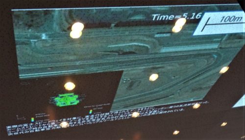 車の風洞実験では中々出来ない 横風の影響や、車線を変更した時の実験。風洞実験より、自動車開発費も安くなる。