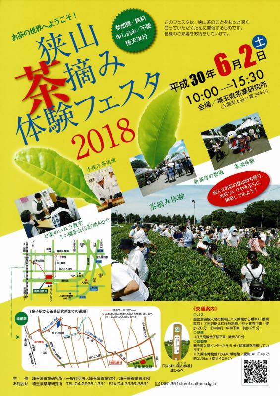 『狭山茶摘み体験フェスタ2018』が、県茶業研究所(入間市)で行われました。