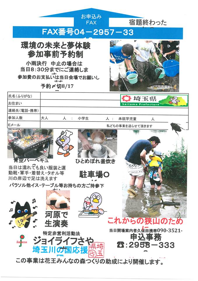 NPOジョイライフ狭山。(このチラシは脱字がありますが、不明点はHPを)