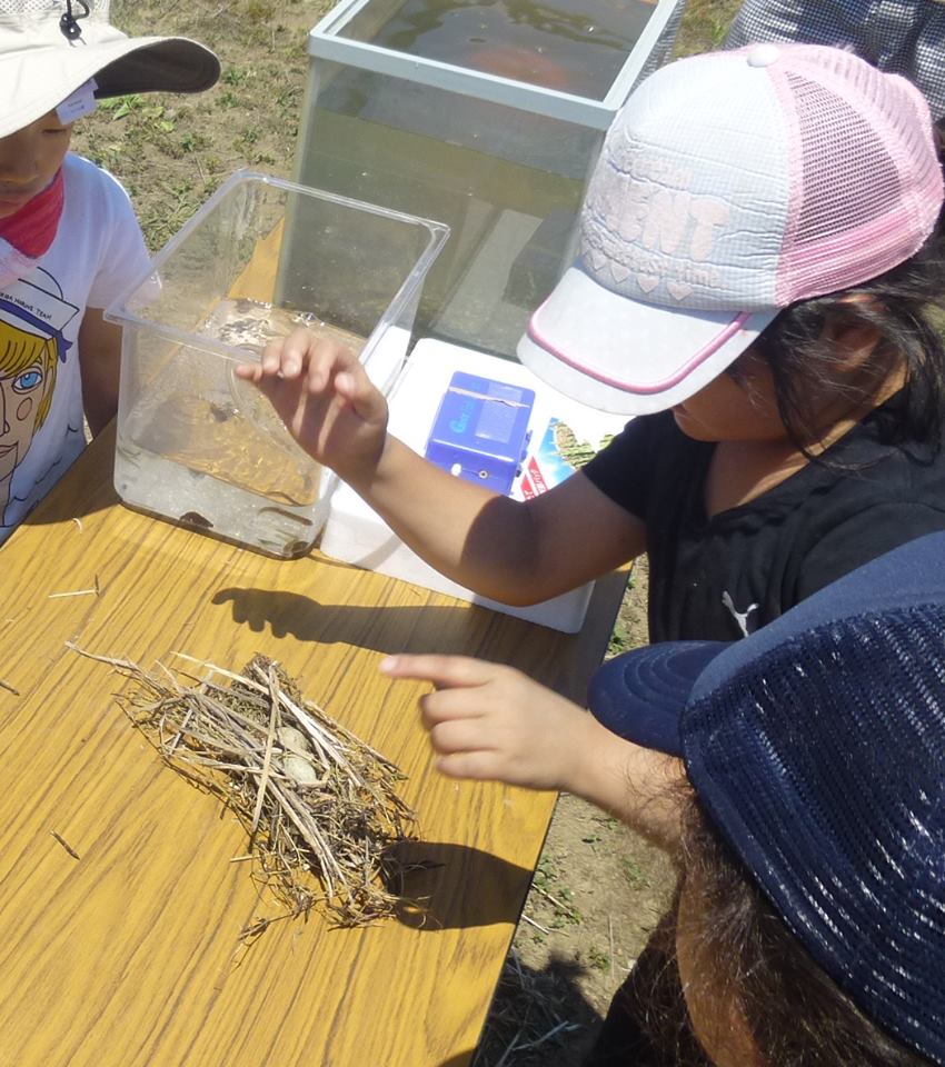 『ひばり』の巣が、たまたま田んぼにあり、子供達が見ていました。