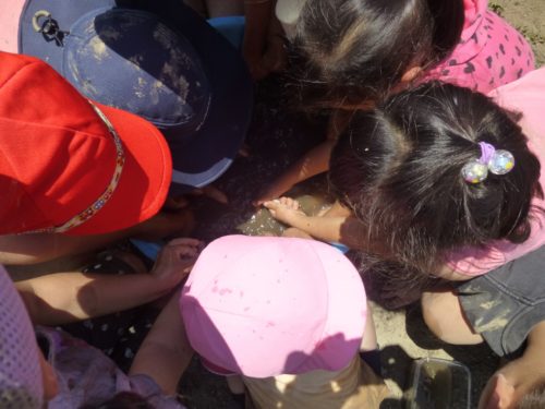 オタマジャクシも、カエルもいて、『生き物調査』してました。
