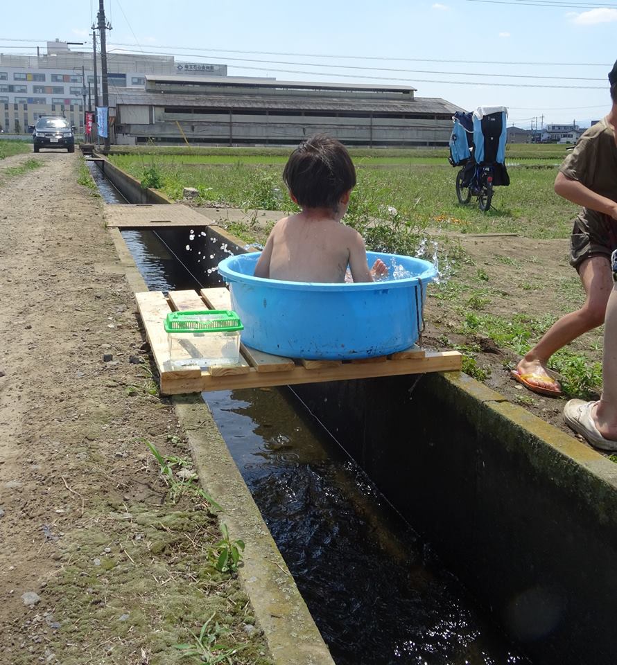 用水路で、泥を落とし、タライの『お風呂』って、子供達は言ってました。