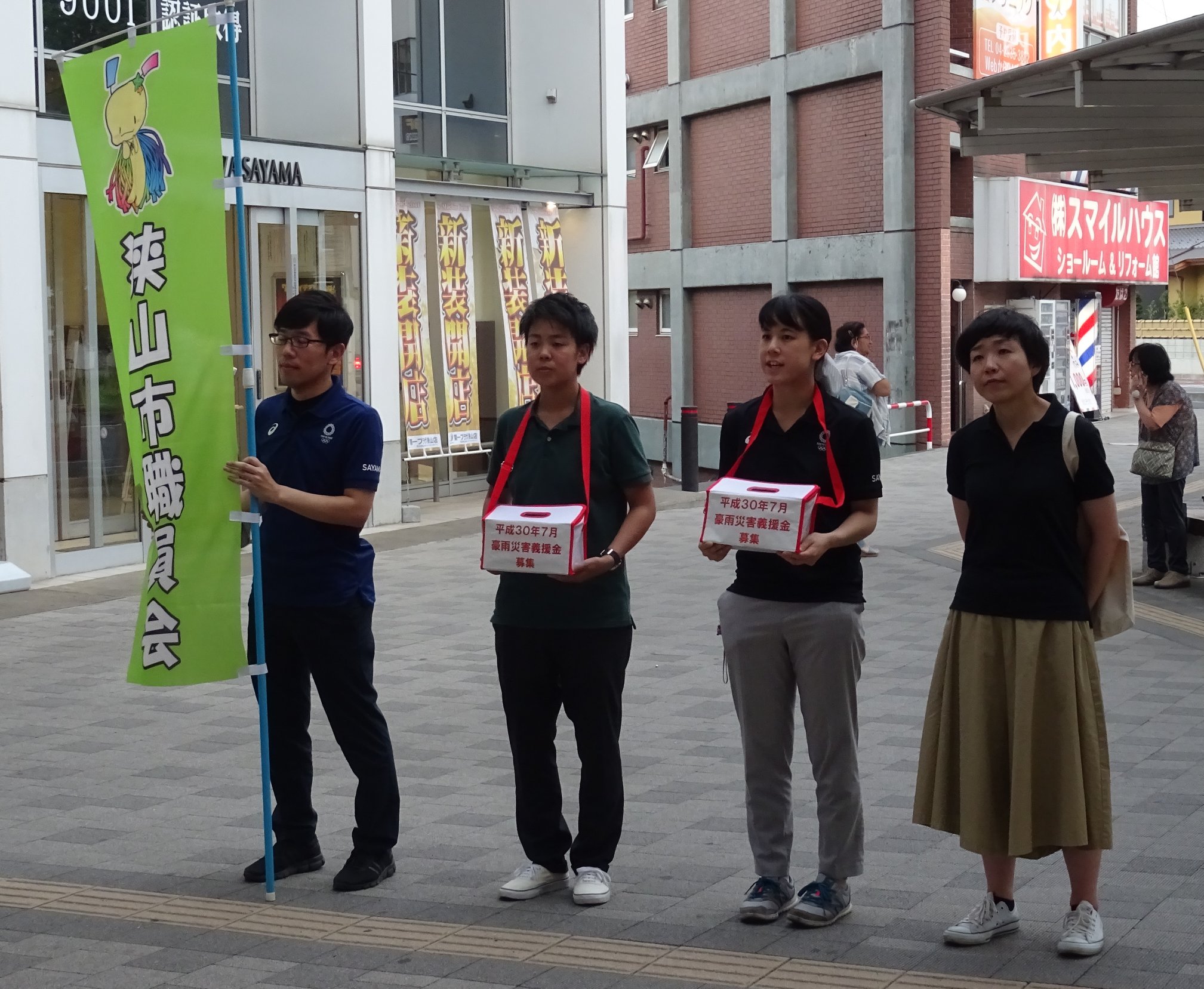 狭山市職員の若手有志がボランティアで『西日本豪雨災害義援金』募金活動を、狭山市駅で今夜(火)5時半~7時まで22人で行い、明日18日(水)は、入曽・新狭山駅で夜6~7時まで行うそうです