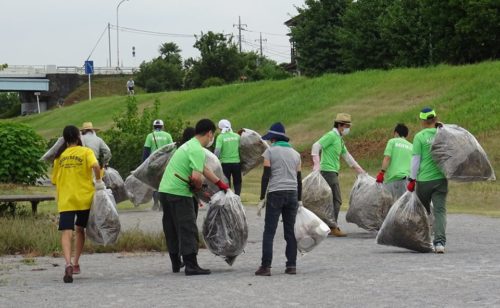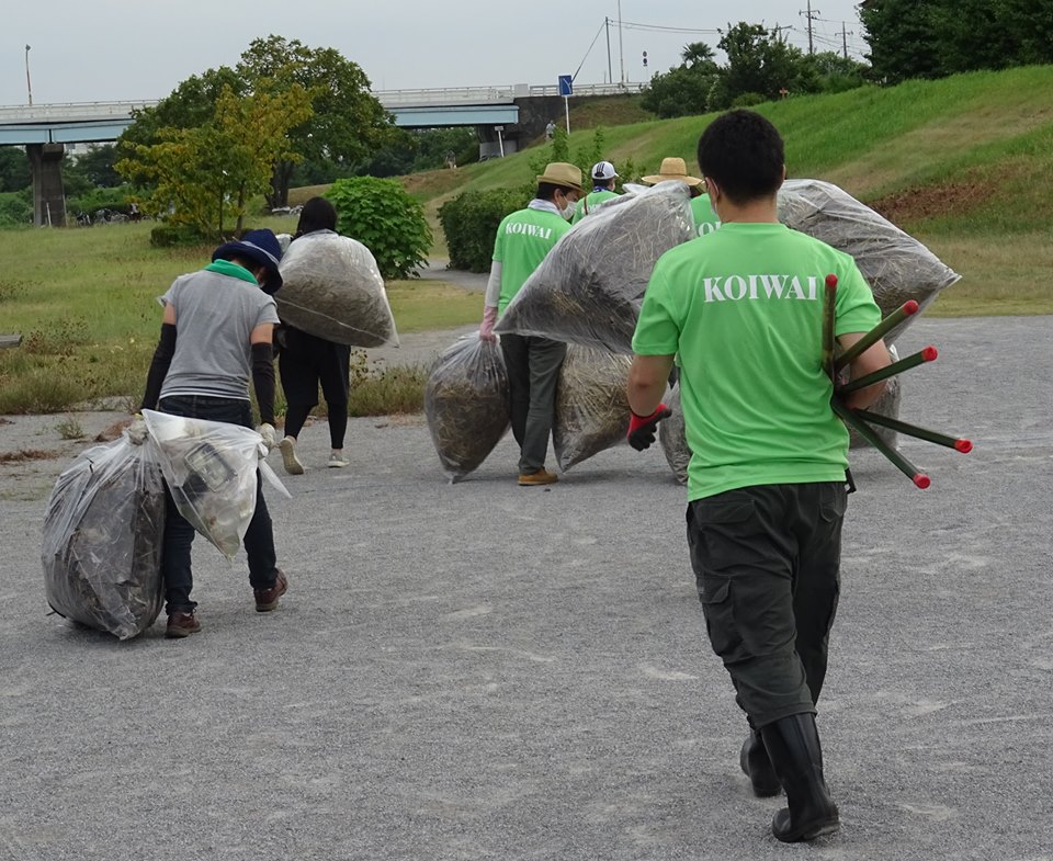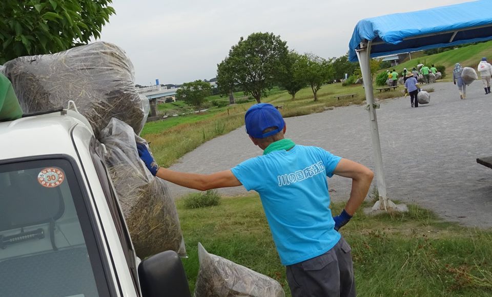 🐮【小岩井乳業】さんが入間川・草刈りボランティア参加(6回目。3年目。緑のTシャツ👚)