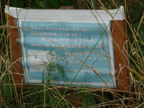 ボランティアさんの手によって、秋には『彼岸花(曼珠沙華)の径(みち)』が入間川河川敷に出来ます。下草を刈らないと、彼岸花がヒョロヒョロになり、育ちにくい。